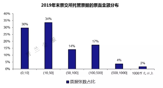 其他同理 数据来源:上海票据交易所,普兰金服整理 在标准化票据业务中,投资人关注的是基础资产的核心信用要素情况,基础资产的分散程度对标准化票据收益率几乎没有影响;但基础资产的分散程度对存托机构归集成本影响很大,票据越分散,存托机构付出的沟通成本、操作成本就越高。因此,存托机构若要追求收益最大化,其理性选择就是归集大额票据。 这与纸票时代大额票据与小额票据价格存在较大差异是一个道理,虽然大票和小票的核心信用要素一致,但银行贴现小票付出的操作成本显著高于大票,导致两者价格存在明显差异。 票据小额化”趋势 从2015年开始,票据就呈现出小额化的趋势,单张票据的平均承兑面额由2015年的421万元持续下降为2019年的98万元。2019年末,上海票据交易所托管的票据中,500万元以上的大额票据张数仅占6%,100万元以下的票据张数占比达到78%。目前票据市场存在大量的小额票据,且大部分持有在中小微企业手中,这部分中小微企业票据融资需求如何解决是标准化票据下一步应该考虑的问题。